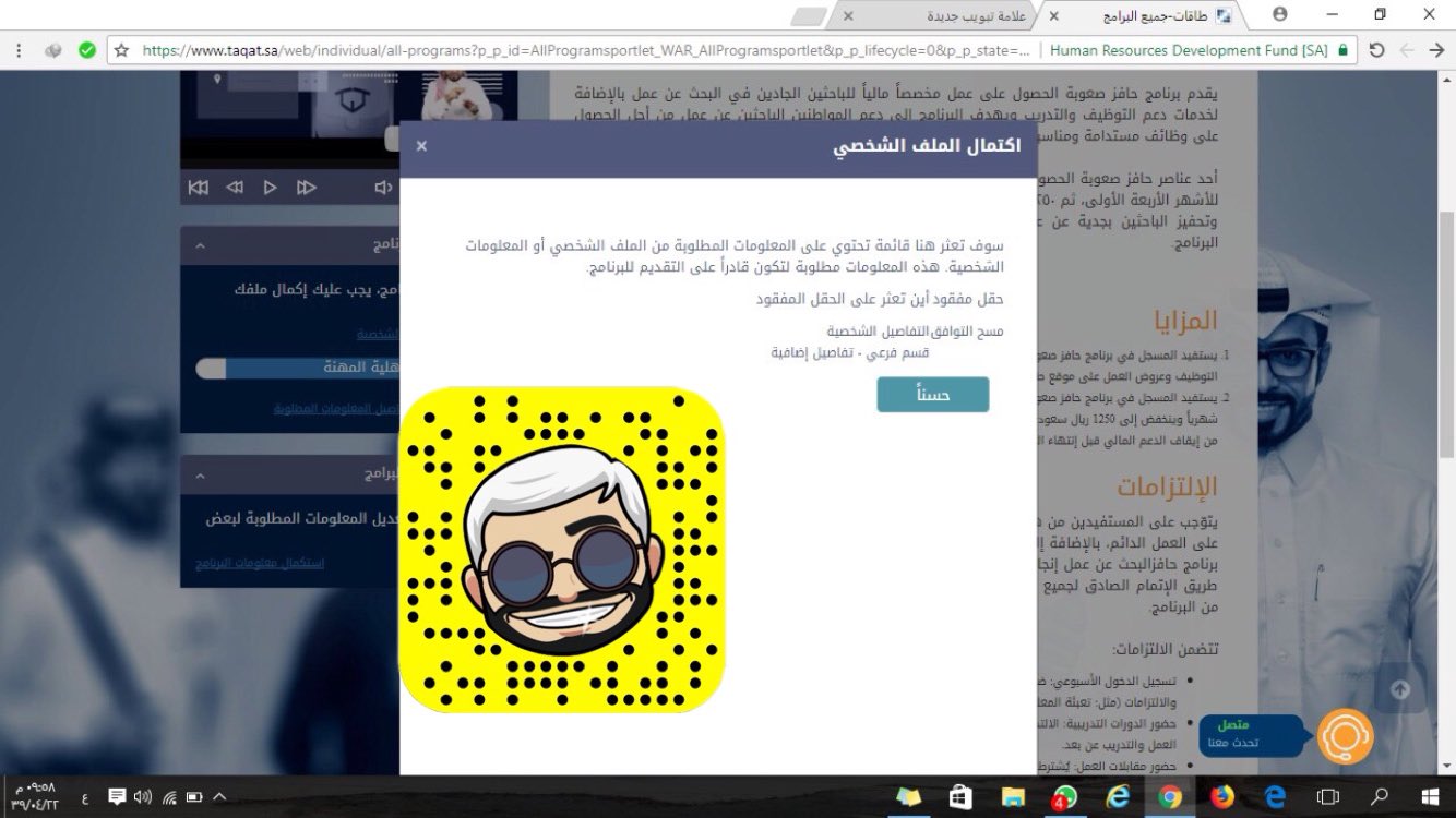 حل مشكلة حافز بالصور 1439 الرجاء اكمال معلومات ملفك الشخصي في طاقات 2017 تعليم كوم