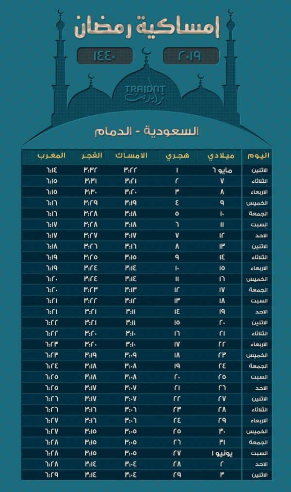 امساكية رمضان 2018 السعودية الدمام تقويم 1439 Ramadan Imsakia