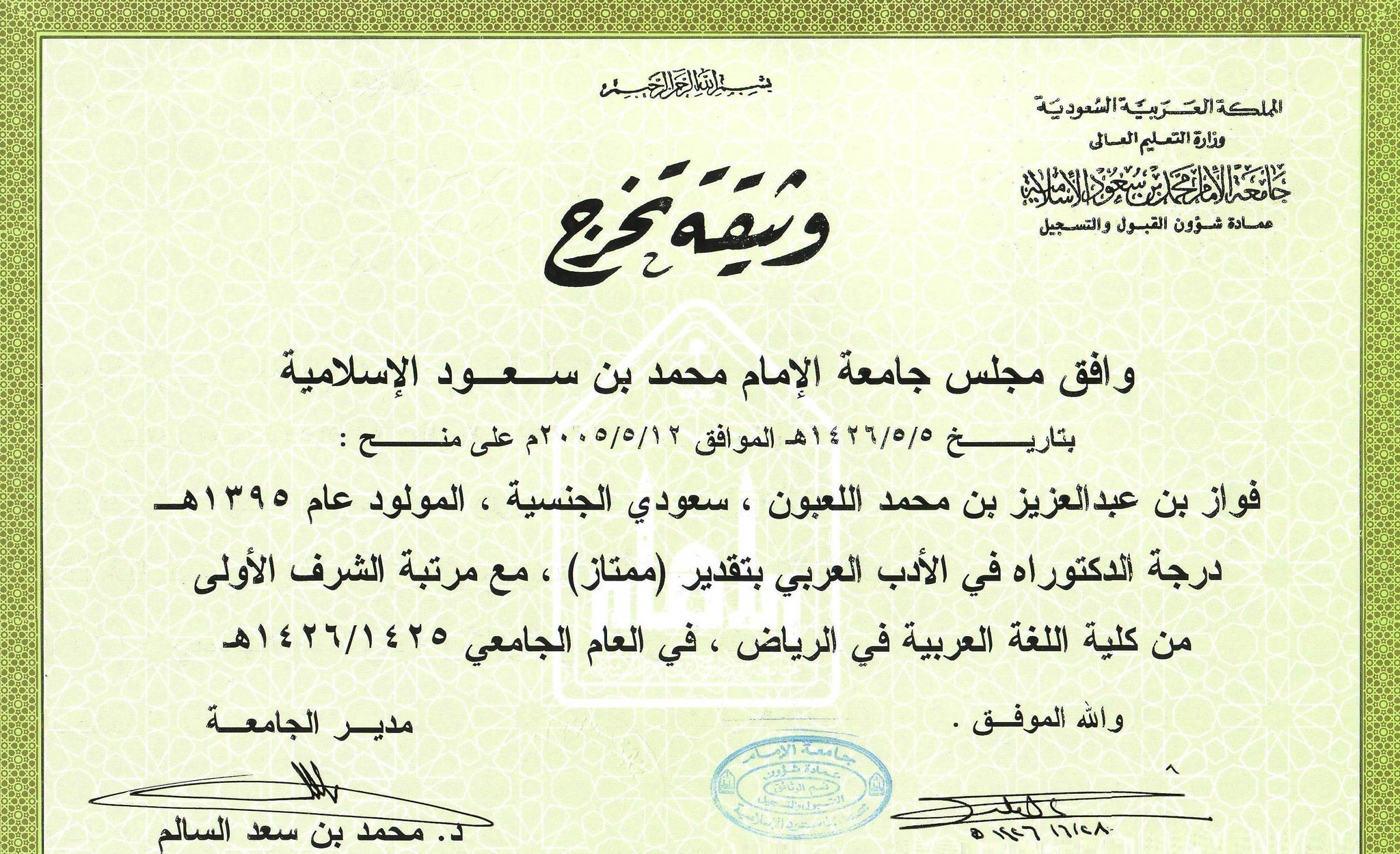 وثيقة تخرج جامعة الامام مرتبة الشرف