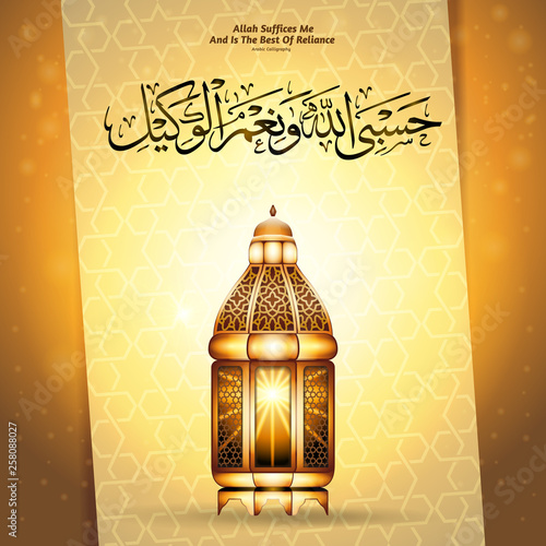 Islamic Greeting Background Design With Hasbi Allahu Wa Ni Mal Wakeel Arabic Calligraphy Translation Allah Suffices Me And Is The Best Of Reliance Buy This Stock Vector And Explore Similar Vectors At