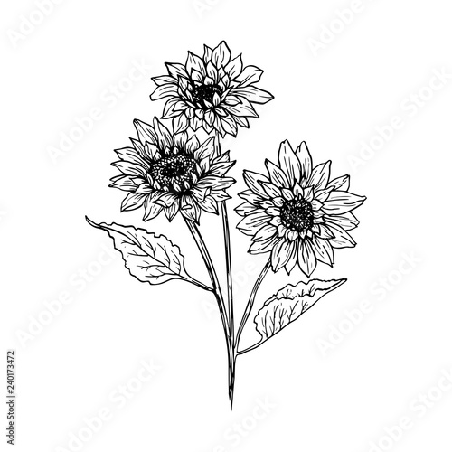 Sunflower Hand Drawn Vector Illustration Floral Ink Pen Sketch Black And White Clipart Realistic Wildflower Freehand Drawing Isolated Monochrome Floral Design Element Sketched Outline Buy This Stock Vector And Explore Similar